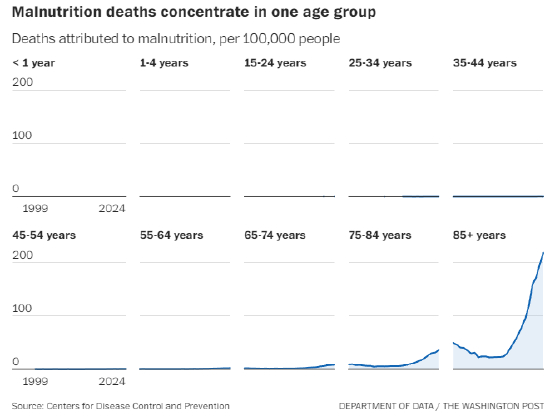 数据显示,美国营养不良致死病例呈飙升态势,85 岁及以上人群受影响尤为严重。本文将解析这一数据突然攀升背后的原因。