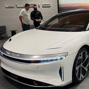 2021 年 9 月 27 日,美国亚利桑那州斯科茨代尔市一家购物中心内,一辆Lucid Air 电动汽车展出。