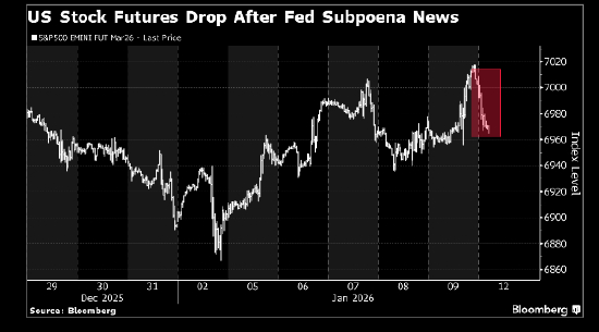 纽约时间7:21,标普500指数期货下跌0.5%,纳斯达克100指数期货下跌0.8%,道指期货跌0.7%。此前美联储主席杰罗姆·鲍威尔表示,美联储因总部翻修事宜收到大陪审团传票。鲍威尔称此举“应该放在政府的威胁和持续施压的更广泛背景下看待”。