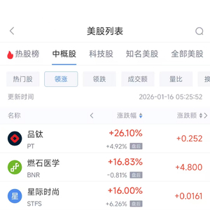 领涨中概股列表: