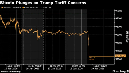 美国总统唐纳德・特朗普提议对八个欧洲国家加征新进口税后,风险资产价格普遍下挫,避险需求升温,加密货币随之大幅跳水。