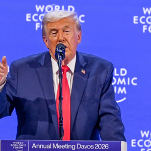 2026 年 1 月 21 日,美国总统唐纳德・特朗普在瑞士达沃斯世界经济论坛年会上发表演讲。