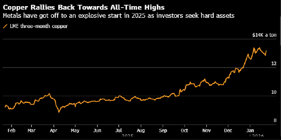 特朗普对地缘政治秩序的搅动以及对美联储的再度抨击,正引发市场避险情绪升温。通常情况下,这主要利好黄金和白银,但近来这种影响已外溢至基本金属市场。