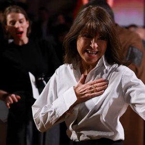 法国巴黎男装周期间,设计师韦罗妮克・尼古拉尼安在其为爱马仕打造的 2026-2027 秋冬男装系列发布会后现身致意。