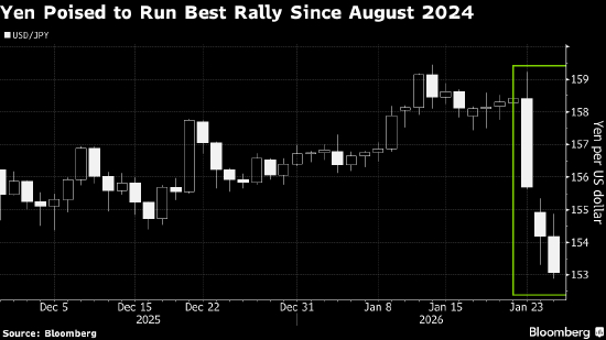近期的涨势源于市场猜测日本和美国正准备出手支撑日元。此前日元一度跌至接近1美元兑160日元,接近促使日本官员在2024年干预市场的水平。日元周二又上涨1%,升至1美元兑153日元下方。