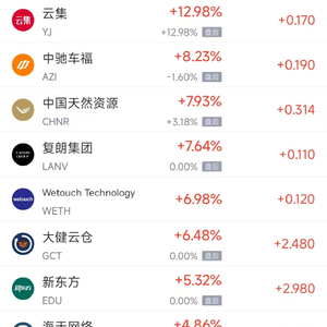 领涨中概股列表: