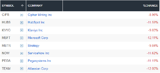 部分软件股跌幅一览