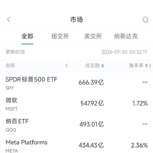 1月30日美股成交额前20:微软市值蒸发近3600亿美元