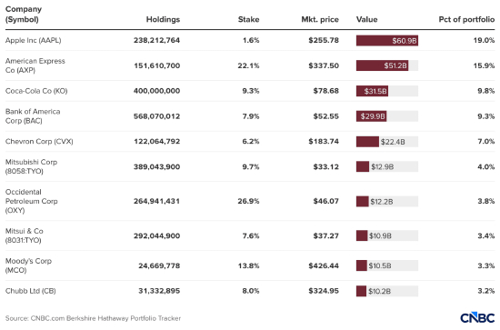 - 伯克希尔市值:1.076049449409 万亿美元;