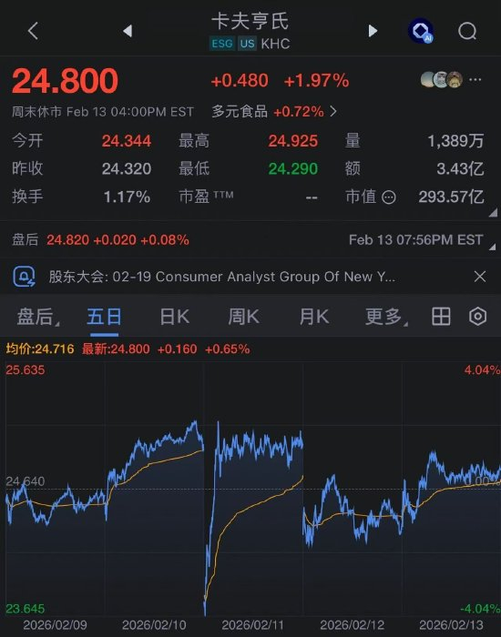 卡夫亨氏股价在周三早间宣布暂停分拆后一度下跌,但随后迅速反弹,全周小幅上涨 0.7%。