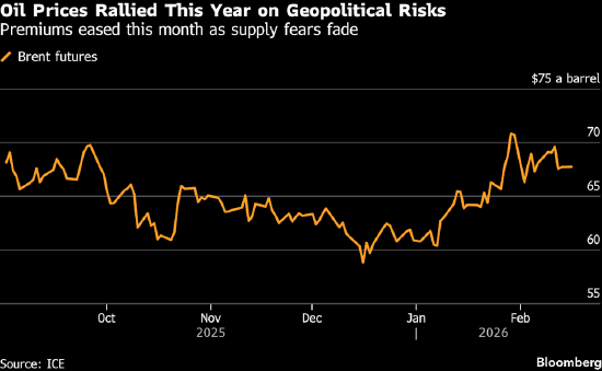 布伦特原油交易价低于每桶68美元,此前已出现今年以来首次连续两周下跌;美国西德克萨斯轻质原油(WTI)则接近每桶63美元。美国总统特朗普周五表示,政权更迭对伊朗而言是最佳结果,此举在日内瓦谈判前进一步加大了对伊朗的施压力度。