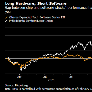 市场担忧Anthropic PBC旗下Claude Cowork等先进人工智能工具将颠覆软件行业,导致相关股票今年大幅下挫。追踪美国软件板块的交易所交易基金下跌22%,与因人工智能推动计算需求而飙升的半导体股形成鲜明对比。