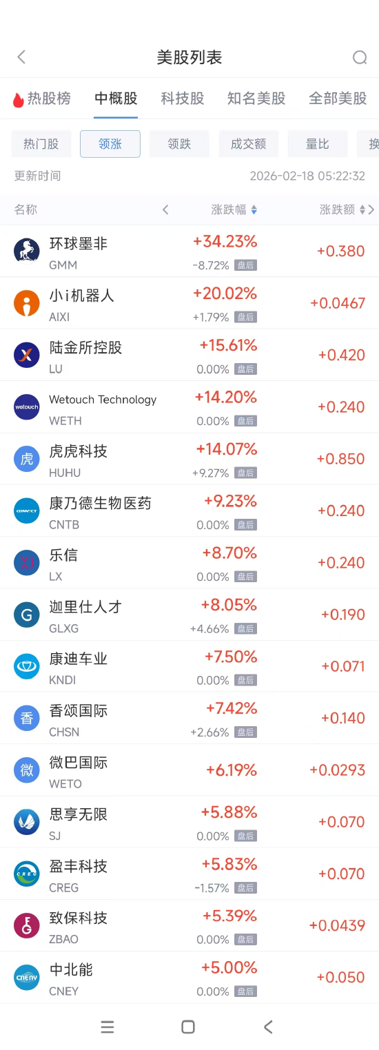 2月18日热门中概股涨跌不一 华住酒店集团涨2.84%,腾讯音乐跌3.19%