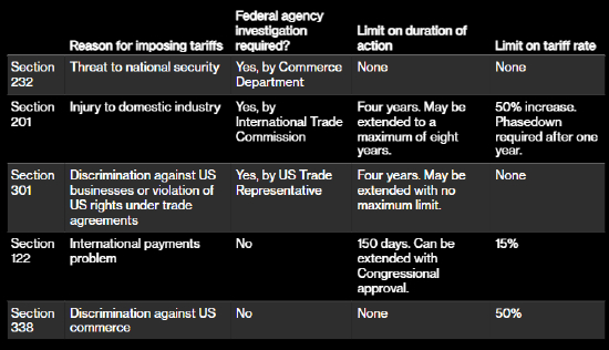 1930年斯穆特-霍利关税法第338条:上限为50%;无需联邦机构事先调查即可实施关税。