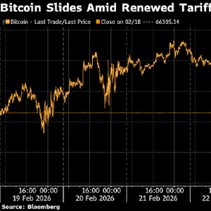 周一亚洲早盘交易中,受美国进口税政策最新不确定性引发的市场恐慌情绪影响,比特币价格下跌。