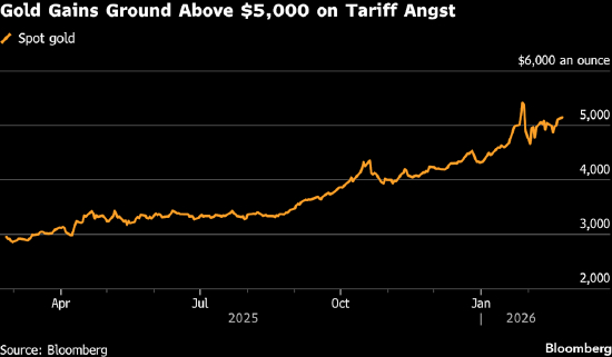 现货黄金一度上涨1.4%,逼近每盎司5180美元。美国最高法院裁定特朗普无权动用紧急权力加收进口税后,特朗普于周六宣布,将对全球商品征收15%的进口税以维持相关措施。美元走弱使得黄金对多数买家而言更具价格优势。