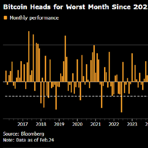 亚洲交易时段,比特币一度下跌2.64%至62,858美元。2月至今跌幅已超过19%,料创2022年6月以来最糟糕月度表现。当年稳定币TerraUSD崩盘引发了连锁反应,导致加密货币对冲基金Three Arrows Capital和贷款机构BlockFi等公司倒闭。