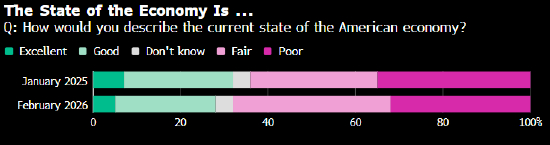 据《华盛顿邮报》、美国广播公司与Ipsos近期民调显示,公众对特朗普经济表现的看法趋于负面,57%的受访者表示不认可,仅41%表示认可。选民对其关税政策(64%不认可)和通胀问题(65%不认可)的评价更为低迷。