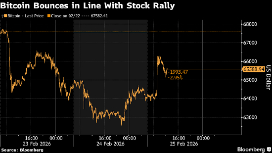 此番早盘上涨与国情咨文讲话前股市走高同步,特朗普在讲话中为其经济政绩进行了辩护。本周早些时候,最高法院作出判决,裁定特朗普无权动用紧急权力征收所谓对等进口税(其核心政策主张之一),这一消息导致加密货币价格大幅跳水;此前特朗普曾援引另一项权力,宣布将对全球征收15%进口税。