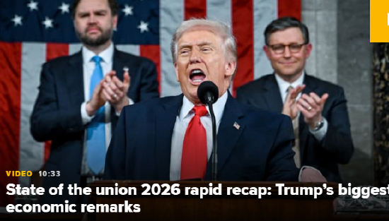 - 特朗普总统于周二发表了时长近两小时的国情咨文,演讲重心聚焦经济,宣称美国经济即将迎来繁荣。