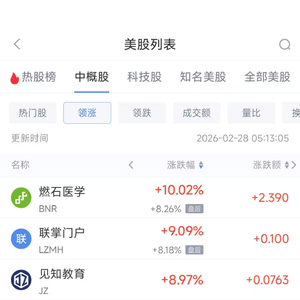 (截图来自新浪财经APP 行情-美股-中概股热门板块)下载新浪财经APP