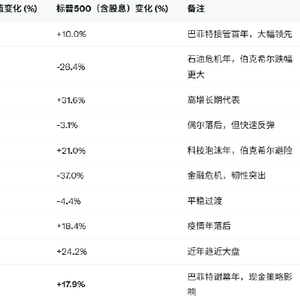 避险能力:在13个标普500负回报年份中,伯克希尔仅两次跌幅更大(如2008年金融危机,伯克希尔-9.6% vs 标普-37%)。