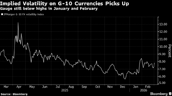 尽管发达市场货币的隐含波动率普遍回升,但摩根大通的一项波动率指标仍低于1月下旬和2月触及的高点,也显著低于去年4月特朗普公布对等关税时的水平。