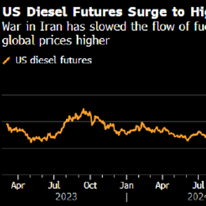 在欧洲,基准柴油期货两日升幅达创纪录的34%。美国柴油期货周二一度上涨16%至每加仑3.37美元,为2023年9月以来最高水平。柴油平均零售价升至2024年5月以来最高水平。