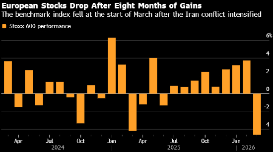 欧洲股市录得自4月以来最大的两日跌幅,中东冲突加剧,令通胀及货币政策前景蒙上阴影。