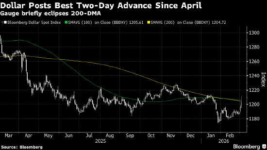 纽约汇市:彭博美元指数创近一年来最佳两日表现 欧元跌破200日均线