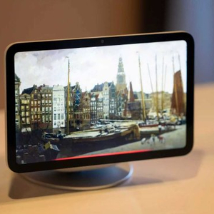 这款显示设备外形类似一台方形iPad,可固定在半球形扬声器底座上,也可安装在墙面支架上,目标是成为家庭中的人工智能中枢。其用户界面采用一组圆形应用图标,排列方式类似Apple Watch的主屏幕。