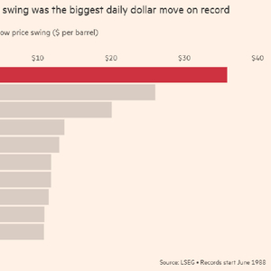 在接下来的23小时里,作为基准的布伦特原油价格一度飙升至每桶119美元,随后暴跌至84美元,创下有记录以来按美元计算的最大日内波动幅度。