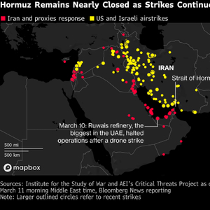 自战争爆发之初以来,霍尔木兹海峡几乎无法通行。多个能源巨头已削减产量。