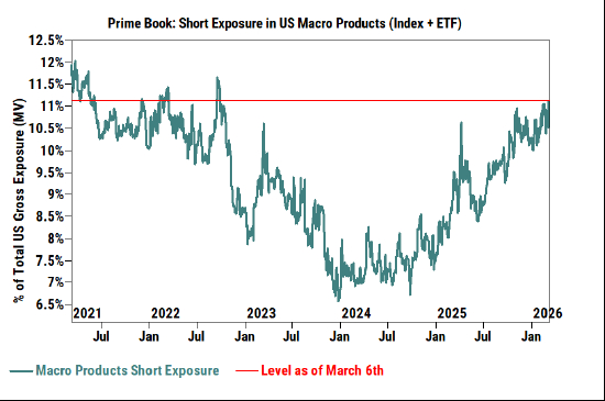 投机投资者大多继续持有个股的多头头寸,同时通过对交易所交易基金和指数期货等产品进行空头押注来构建对冲。高盛主经纪商团队的数据显示,目前空头头寸敞口已达到2022年9月以来的最高水平。