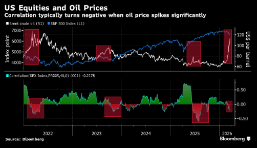 这些策略师在报告中称,“尽管市场中高风险因素和投机性板块的一些泡沫已经被挤出,但我们仍然看到投资者的自满情绪。”他们补充说,当原油价格上涨约30%时,标普500指数与油价之间的相关性通常会变得“越来越负相关”。