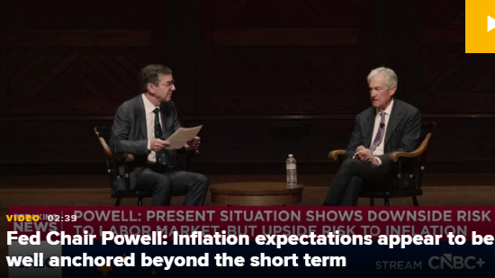 - 美联储主席杰罗姆・鲍威尔表示,尽管能源价格上涨,但通胀预期依然稳固。