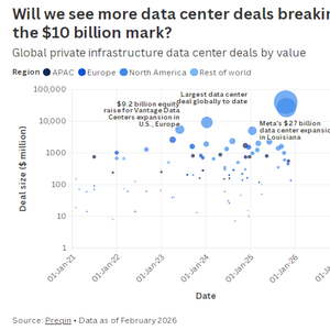 数据服务商 Preqin 的数据显示,去年私人资本参与的数据中心基础设施交易规模持续超过100 亿美元,最大一笔交易规模达400 亿美元,由英伟达、微软、贝莱德及马斯克的 xAI 等组成财团收购了 Aligned Data Centers。