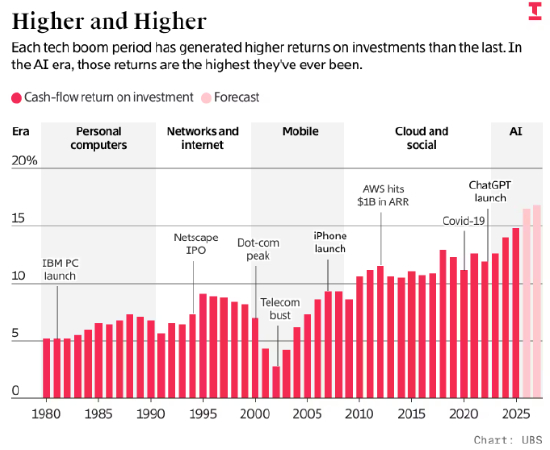 在 HOLT 任职近 17 年的塔尔博特表示:“每一轮科技周期中,总会有一个时点,当下的赢家不再是未来的赢家。”