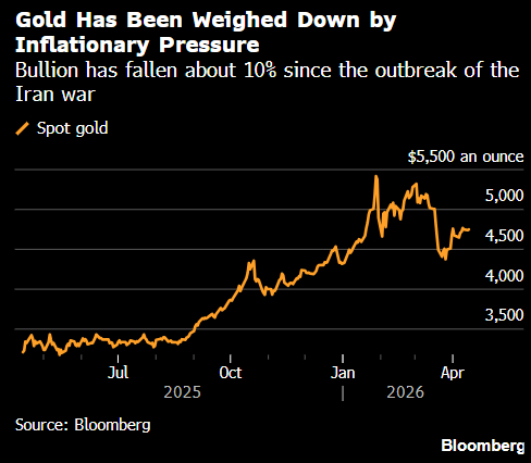 金价一度上涨1.2%,至每盎司4,796美元,收复此前两个交易日的跌幅。尽管美国已开始对霍尔木兹海峡实施海上封锁,但美国总统唐纳德·特朗普表示,伊朗就和平谈判联系了美国政府。伊朗总统则称,伊朗准备仅在国际法律法规的框架内继续进行和平谈判。