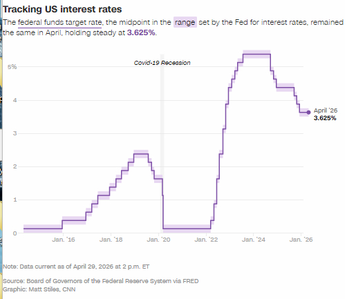 美联储官员将基准贷款利率维持在 3.5%–3.75% 区间。这是杰罗姆・鲍威尔在 5 月 15 日任期届满 前,以主席身份主持的最后一次会议。