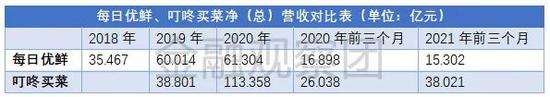 数据来源:招股书,其中每日优鲜口径为总净收入,叮咚买菜为总收入