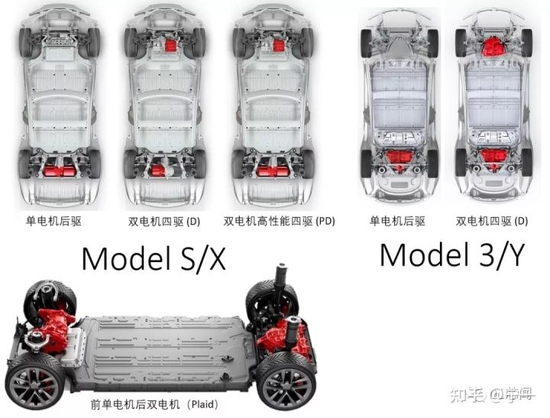 Model S/X,Model3/Y以及Model S/X Plaid的动力总成差异 (来源:特斯拉)