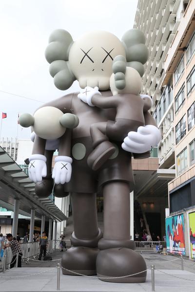 国际著名艺术家 KAWS,来自美国纽约西南部工业区的布鲁克林,曾于多个国家举行艺术展览。KAWS 年少时已开始对街头涂鸦产生兴趣,自1996年开始在曼克顿街头进行涂鸦创作,在广告灯箱、电话亭及巴士站上画上其个人风格的骷髅头及 XX 眼睛图案,并凭此标志而闻名。由他之前创作的5米高雕塑 COMPANION (PASSING THROUGH) 直至近期的7米高雕塑 CLEAN SLATE,都充份表现 KAWS 擅于将设计、商业艺术、街头文化及艺术的世界融汇为一;同时将生活题材及影像重新定位,构筑起专属 KAWS 的独特影像作品系列。KAWS 独树一帜的艺术风格对当代视觉文化影响深远,其作品在欧美及日本等地均受到热烈追捧。