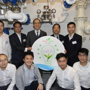 (后中)信和集团黄永光先生很高兴与香港理工大学及奥雅纳工程顾问合作研发首个大厦水力发电系统;过程并充分体现年轻科研团队的活力、创意和团队精神。
