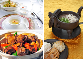 各酒店精选独具代表性的菜肴,展现出锦江“脍不厌细、食不厌精”的中华餐饮文化,结合市场需求,不断融入新的元素,将烹饪文化与菜肴文化融为一体。每一种菜肴用料丰富,营养均衡,含有大量特别有益于身体健康,以及特别适合在冬季增强免疫力的食材。菜肴分别有:新锦江大酒店长乐坊中餐厅用高丽参、枸杞和山药精心熬制的洋参淮山炖土鸡汤;建国宾馆小上海餐厅用上等蟹肉、对虾和蛤蚌秘制的八仙鱼头皇;还有国际饭店丰泽楼中餐厅的“糁”,用老母鸡、米仁、京葱、生姜、香菜及十三味中药粉熬制而成,口味咸鲜适口,药香醇厚,具有祛湿排毒,增强人体免疫之功效,为中华药膳之佳肴,被列入上海市非物质文化遗产名录的国际饭店京帮菜系名点。