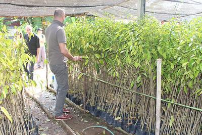 欧洲地区发展经理 Sebastien Gouspillou 近距离查看沉香树幼苗