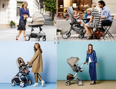 图1:Stokke Crusi 婴童车搭配可携式睡篮;图2:Stooke Xplory 婴童车;图3: Stokke Crusi 婴童车搭配冬季套件;图4:Stokke Xplory 婴童车搭配型格套件