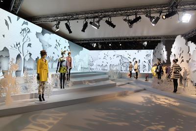 除了秀场上的表现可圈可点,婉甸展区也体现出其作为一个国内优秀服饰品牌的一流实力,让展区成为会场中第二个美丽丛林当然又是婉甸的一次大手笔设计。本次场馆的布置灵感来源于“兔子洞”。与婉甸的品牌 logo 灵动的兔子形象相符合,向观众呈现婉甸自然和谐的品牌理念。整个场馆入口就好像是兔子洞洞口,邀请大家步入其中,仿佛体验爱丽丝梦游仙境一般,感受设计师在本季系列中的独特匠心。
