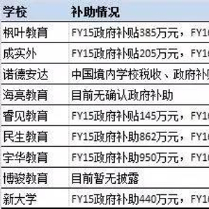 此外,二审方案就对不同性质民办学校的扶持、补贴作出笼统叙述:“县级以上各级人民政府可以采取购买服务、助学贷款、奖助学金和出租、转让闲置的国有资产等措施对民办学校予以扶持;对非营利性民办学校还可以采取政府补贴、基金奖励、捐资激励等扶持措施”,具体各学校所受的影响更多取决于地方政府,带有一定不确定性。目前来说,政府补助越多的公司,面临不确定性越高。