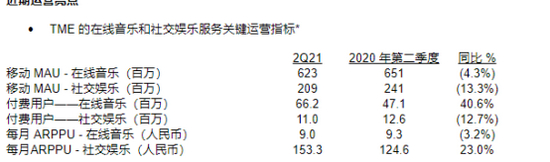 第二季度TME除了在线音乐付费用户、社交娱乐月均ARPPU在增长,其他各项指标均在下滑。